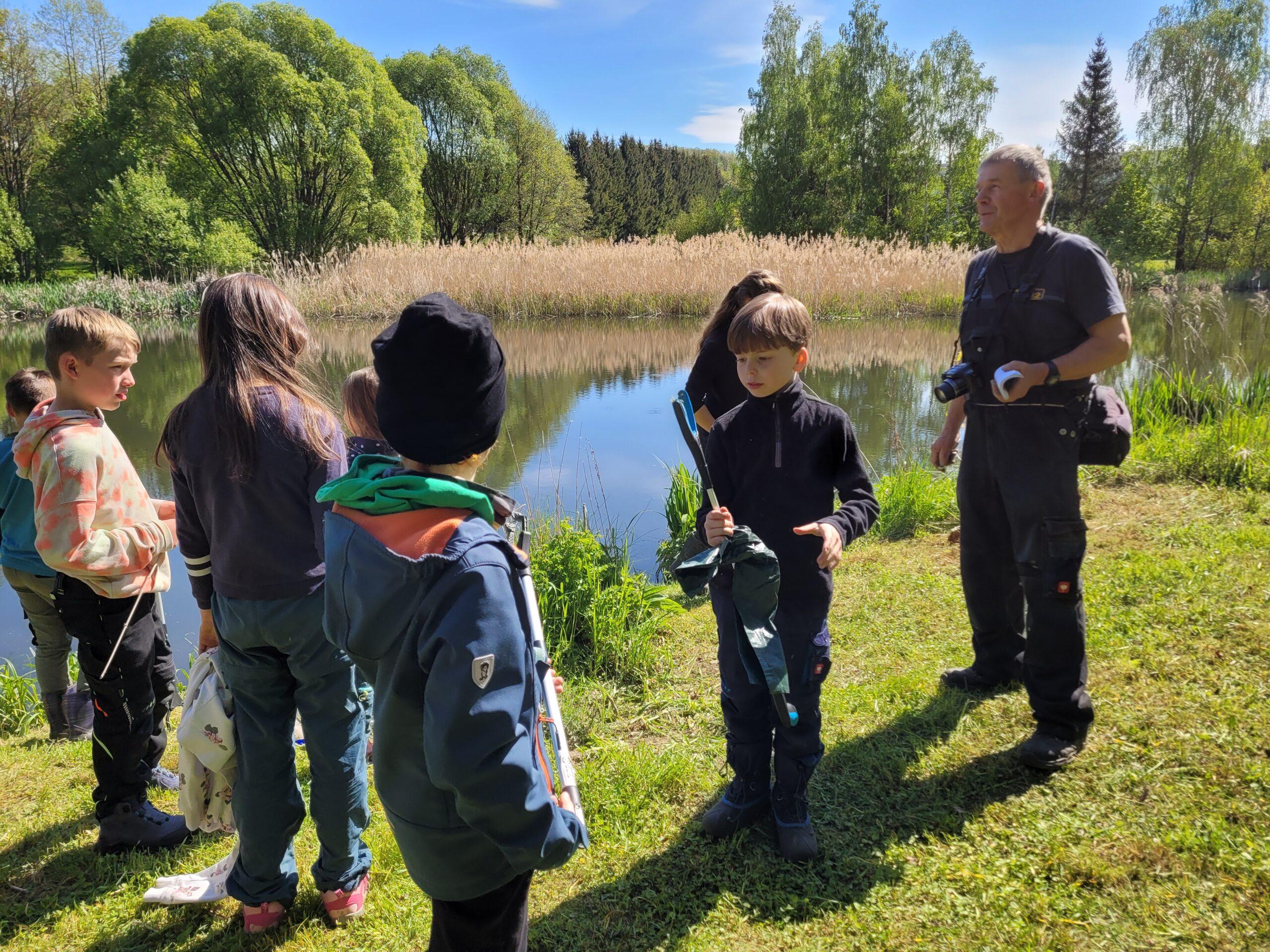 Am 10. Mai unterstützte der Naturforscherclub die Frühlingsarbeiten des NABU am Hofteich in Großrückerswalde, um den sich der Naturschutzbund seit Jahren kümmert. Das Gebiet ist wichtiges Rast- und Brutgebiet für viele Vögel sowie außerdem Laichplatz vieler Lurche im Siedlungsraum Großrückerswalde. Wir halfen den NABU-Aktiven unter der Leitung von Bernd Seifert bei der Geländepflege, bei Pflanzarbeiten (es wurden 100 Insektenfutterpflanzen gepflant), beim Müllsammeln sowie bei der Vogelerfassung anlässlich der „Stunde der Gartenvögel“(25 Vogelarten!). Anschließend hatten wir auch noch Zeit, das Leben im Teich näher zu untersuchen und stellten leider ein massives Fischsterben fest, deren Ursachen wir noch nicht kennen. Vielen DANK an die Mitstreiter des NABU für diesen gelungenen Vormittag!