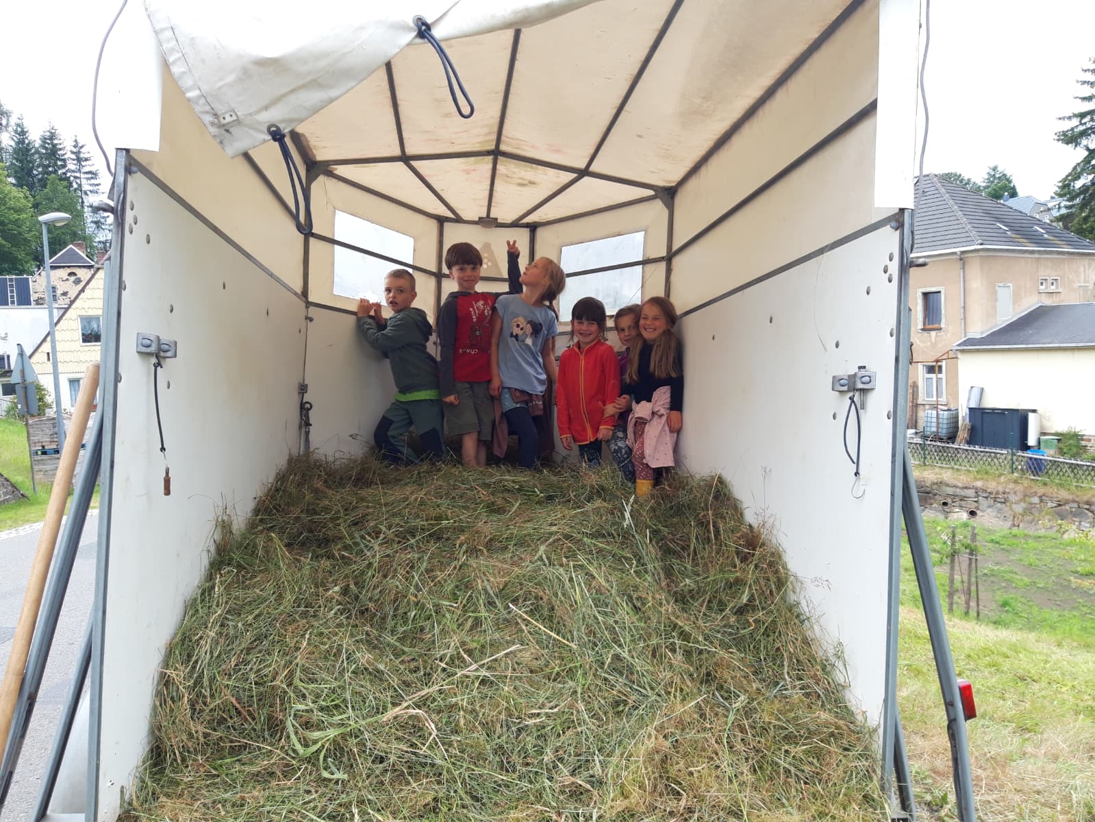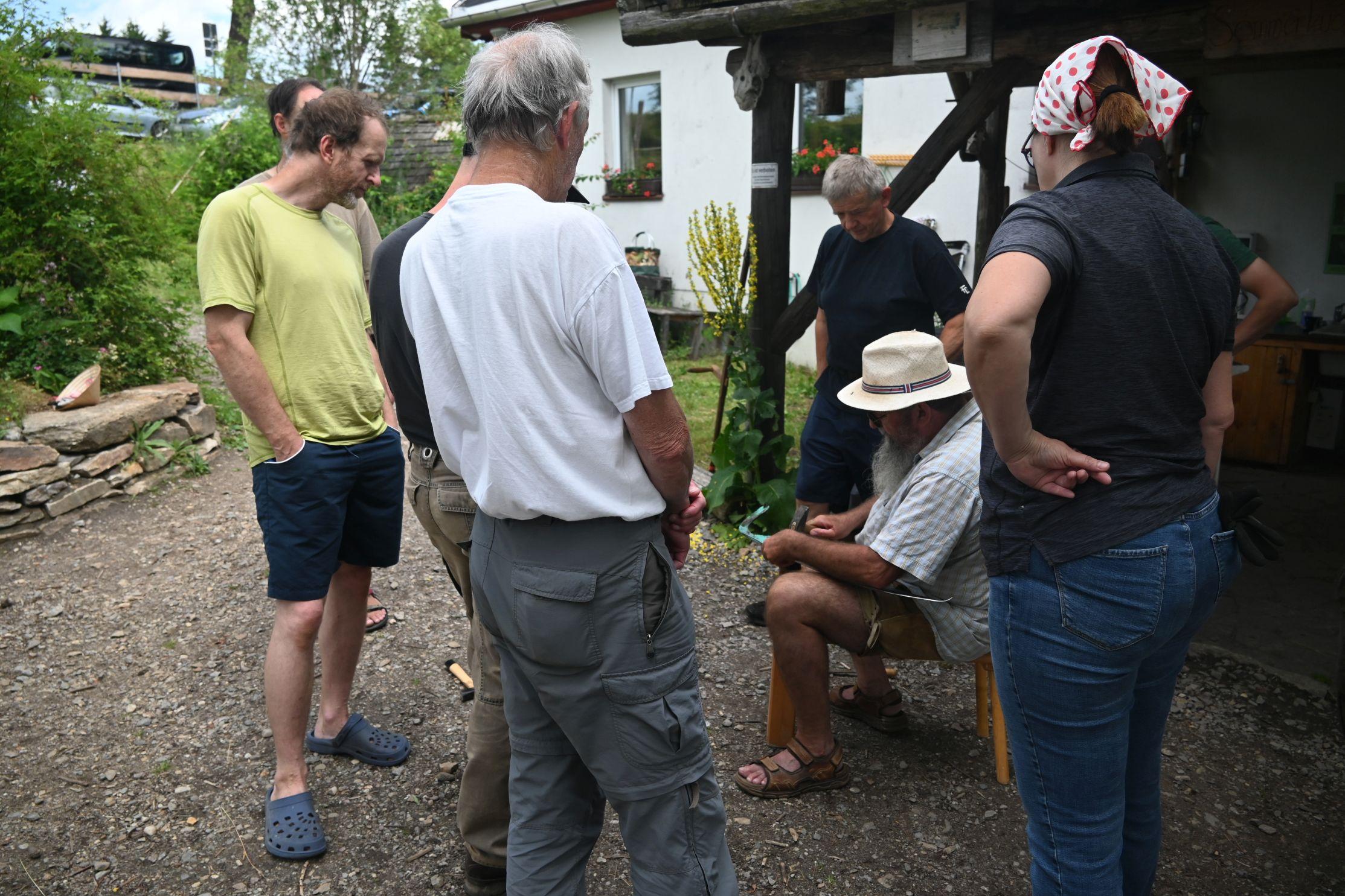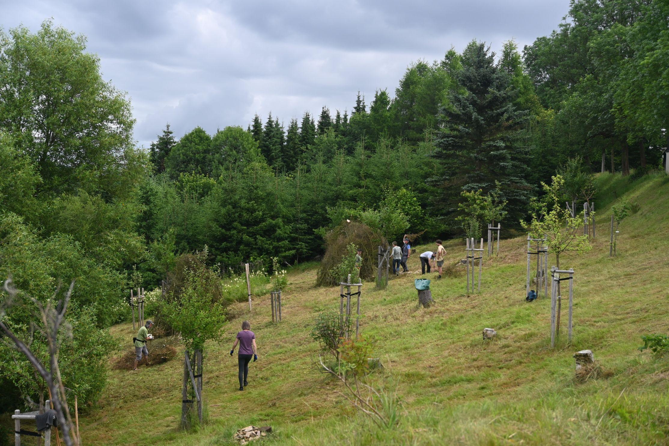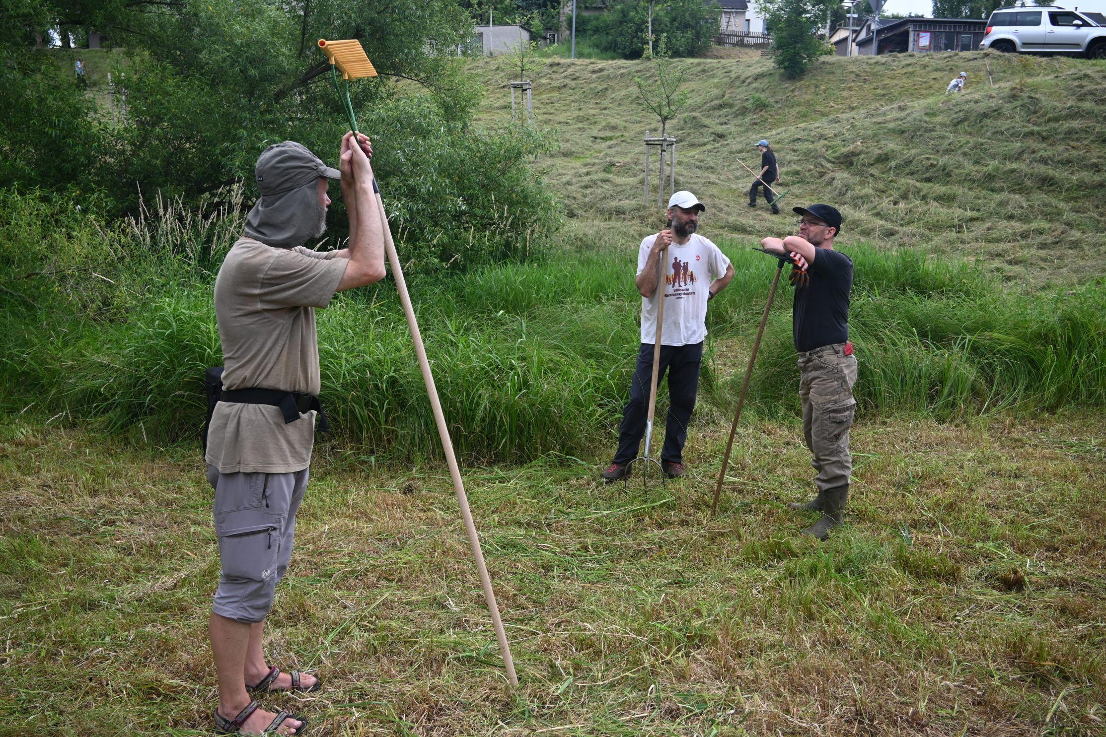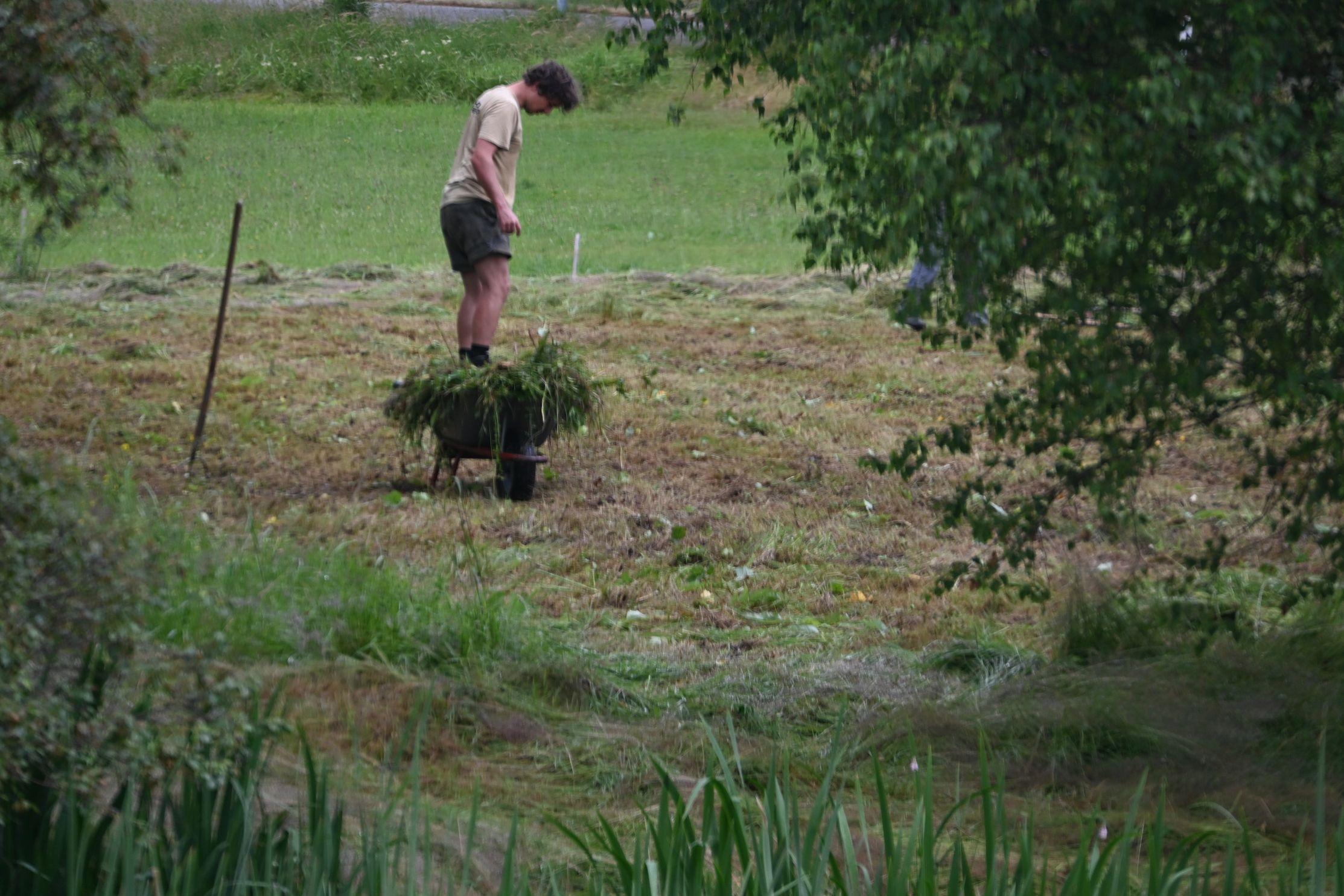 Wir danken den vielen Helferinnen und Helfern, die uns in diesem Jahr bei der Heuernte auf den Rübenauer Bergwiesen vom 14.07.-20.7.2025 unterstützt haben! Bei überwiegend durchwachsenem Wetter war es trotz der engagierten Beteiligung leider nicht möglich, alle Flächen wie in den Vorjahren zu bearbeiten. Dennoch entstanden durch den fleißigen Einsatz wieder etliche Heuballen, die inzwischen erfolgreich an Pferdebesitzer abgegeben werden konnten. Letztlich sind die (Wieder-)Begegnungen sowie der Austausch unter den naturinteressierten Teilnehmenden genauso wichtig wie die Heu-Ernteerträge. Wir genossen zudem eine leckere vegetarische Versorgung durch Ina Hoyer (Peacefood Chemnitz), eine Exkursion ins benachbarte Tschechien sowie in Heiners Drechselwerkstatt und freuten uns über ein musikalisches Highlight am Lagerfeuer beim Konzert von Heiner Stephani. Alle Interessierten sind auch im kommenden Jahr wieder eingeladen, uns bei freier Kost und Logis bei der Heuernte zu unterstützen: